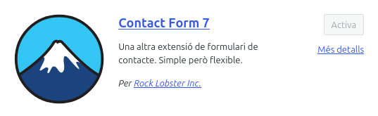 Contact Form 7 és el plugin de formularis de contacte més utilitzat a WordPress. S’ha creat un formulari amb els camps de nom, correu electrònic, assumpte i missatge, configurat per enviar les respostes directament al correu de l’administrador. El formulari s’ha inserit a la pàgina de Contacte mitjançant el seu shortcode i s’ha provat per verificar que els missatges arriben correctament.
