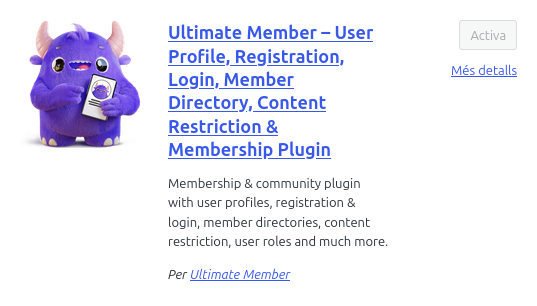 Ultimate Member permet crear comunitats en línia amb perfils d’usuari personalitzats i bells. Ha creat automàticament les pàgines de Registre, Inici de Sessió i Perfil d’Usuari, completament integrades al disseny del lloc. S’han configurat els camps del formulari de registre i els rols d’usuari, permetent gestionar qui pot accedir a cada part del lloc web.