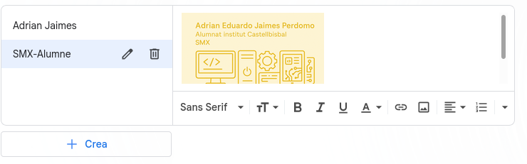 Si volem donar-li un aspecte més formal, podem utilitzar una plantilla d’una eina de disseny en línia, personalitzar-la i posar-la com a signatura.