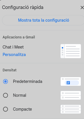 A la part superior dreta de la pantalla, busquem la icona de la roda dentada (engranatge). En fer-hi clic, apareix un menú desplegable.