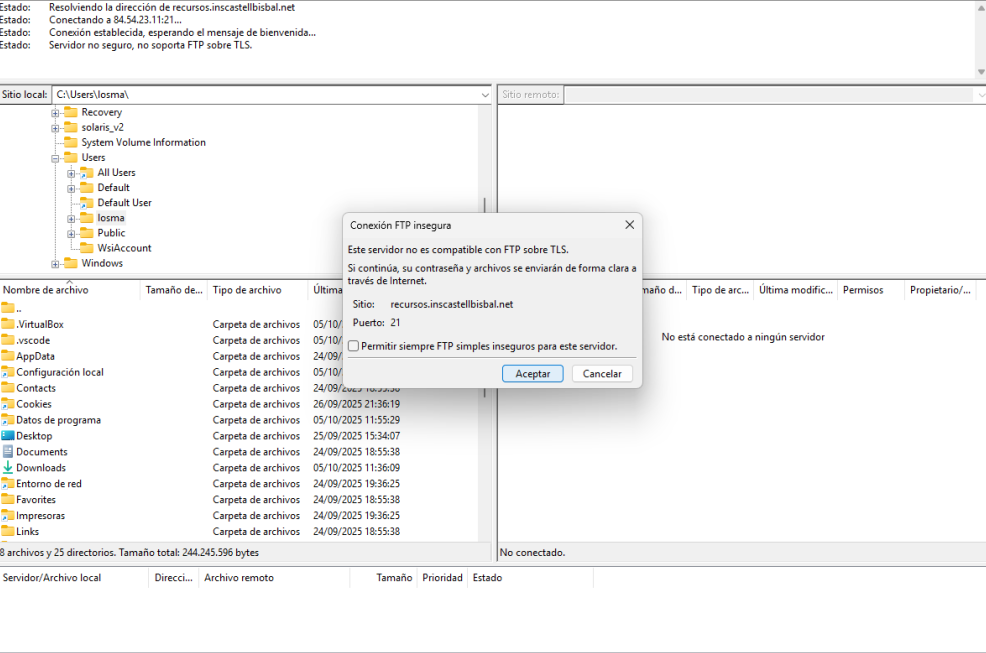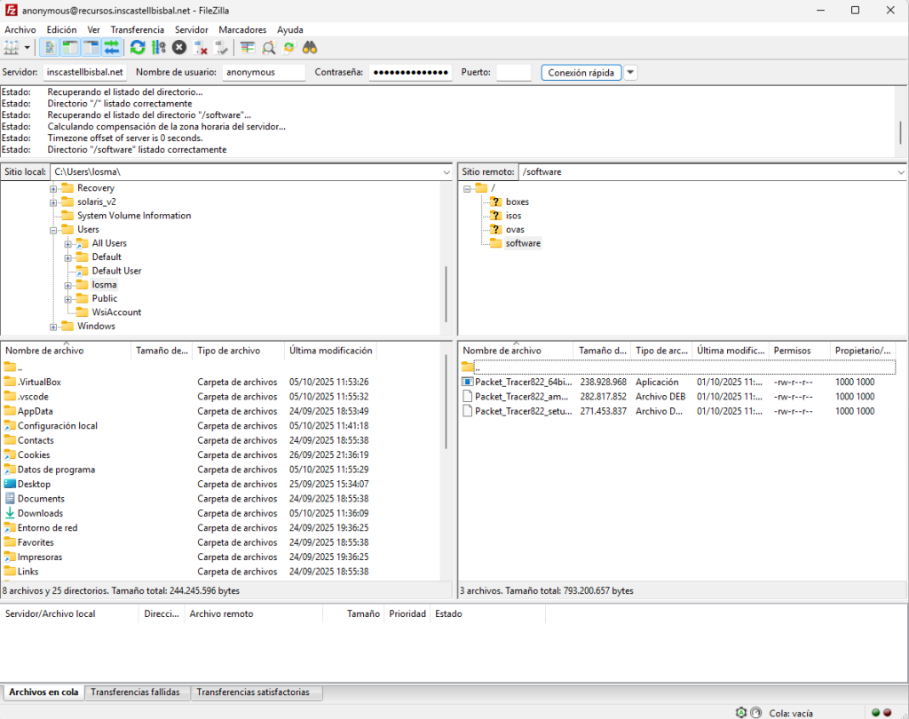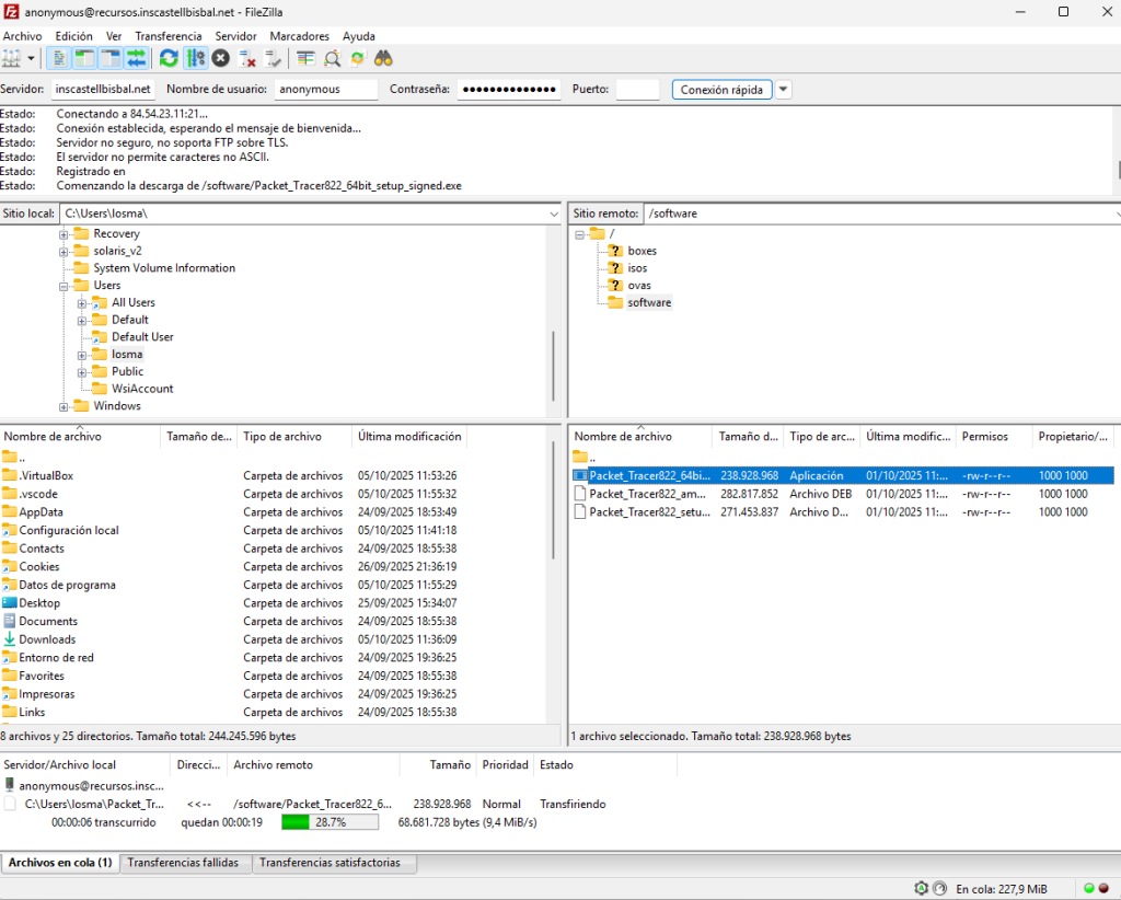 Obrim l’arxiu de Packet Tracer i el movem a l’altra banda del servidor una vegada despres vaix he esperat que els fitxers es dupliquen a la meva màquina de treball a casa per poder obrir després el FileZilla.