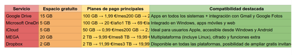 En aquest apartat he fet una comparativa d’aquests 5 navegadors de Google,Microsoft ,iCloud,MEGA,Dropbox per poder saber el màxim emmagatzematge per poder veure quina és la de més adequada.