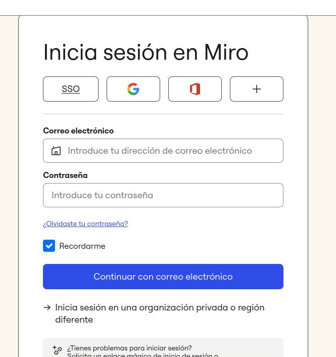 Per poder accedir a la pàgina de Miro podeu donar-li el botó d’iniciar amb Google i triar el correu corporatiu del centre per poder accedir molt més ràpid.