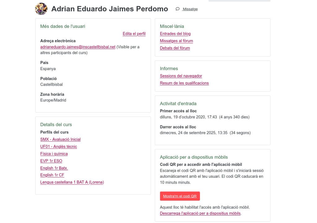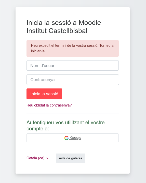 Per poder tenir accés al Moodle, havíem de tenir el nostre compte de la institució on vam estudiar i poder iniciar sessió amb aquest compte des Google.