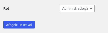 A la secció Rol, tria Administrador (Administrator) del llistat desplegable.