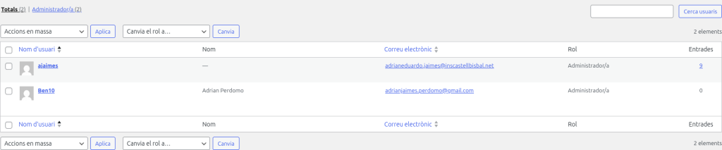 Compte major amb permisos totals del WordPress