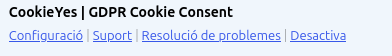 CookieYes: m’ha permès configurar les cookies del lloc segons les preferències de privadesa dels usuaris o aplicar una plantilla estàndard. És essencial per informar sobre els drets del lloc i garantir la transparència amb els visitants.